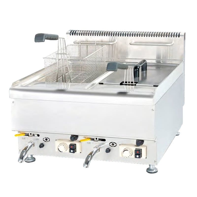 Freidora a gas de 12+12 litros con grifo de sobremesa