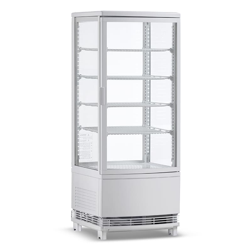VITRINA DE 4 CARAS DE CRISTAL DE 4 ESTANTES BLANCAS