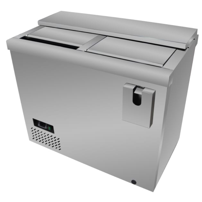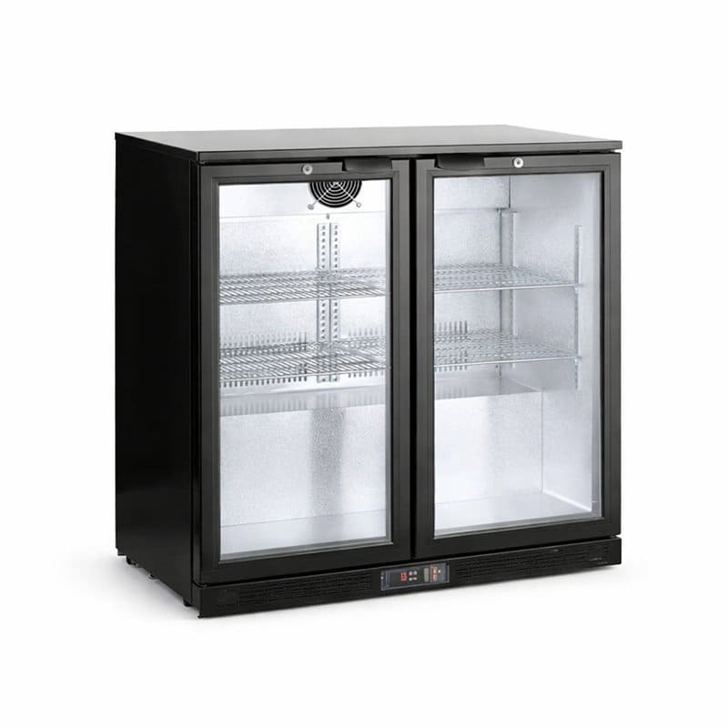 Con una amplia capacidad de 1000 litros, este armario expositor cuenta con dos puertas correderas de vidrio de doble acristalamiento que incluyen un sistema anti-condensación y cierre automático, asegurando una visibilidad perfecta en todo momento.
