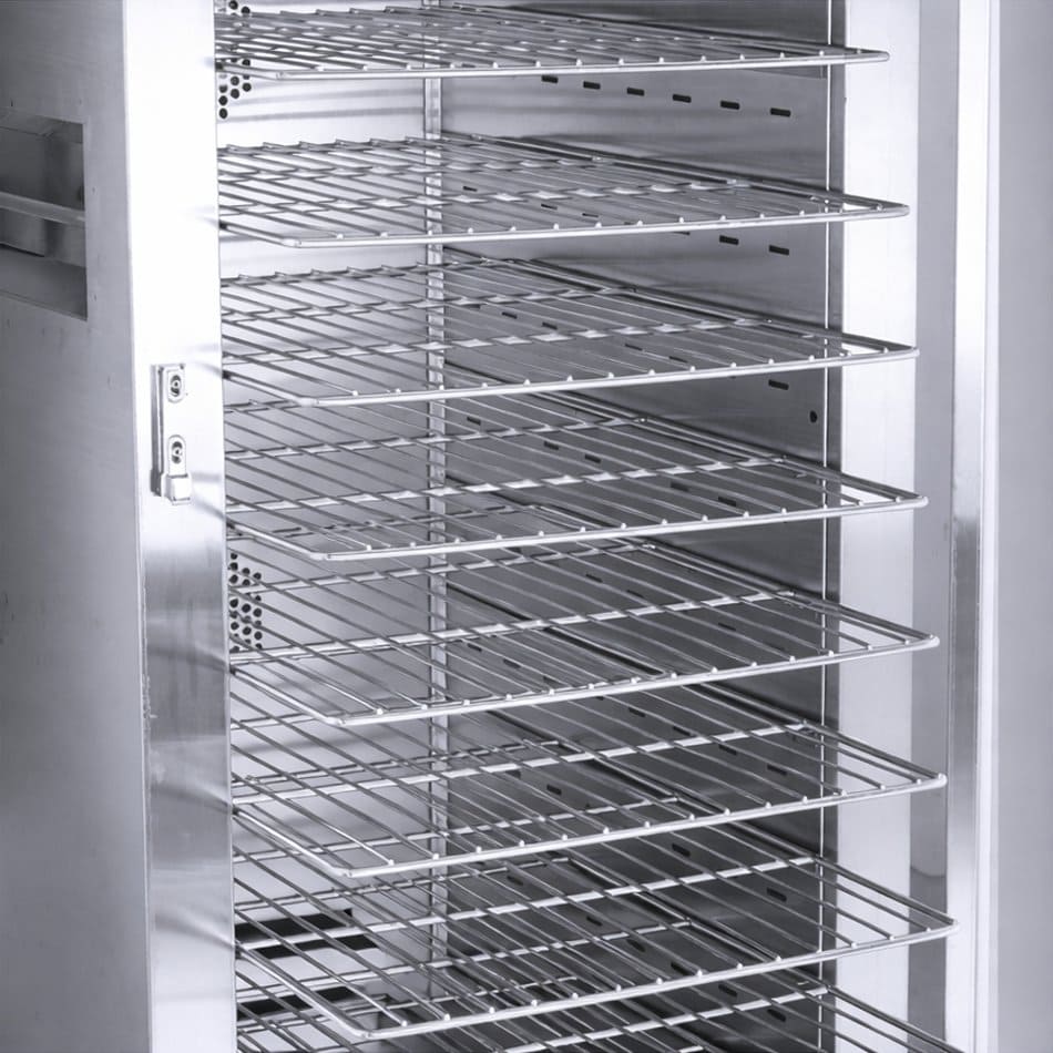 El armario caliente ACD1PEL está diseñado para mantener tus alimentos a la temperatura ideal y garantizar su frescura en cocinas profesionales. Este equipo combina funcionalidad y eficiencia, con una capacidad para 11 parrillas y un rango de temperatura de +30°C a +110 °C, perfecto para la conservación de comidas preparadas.