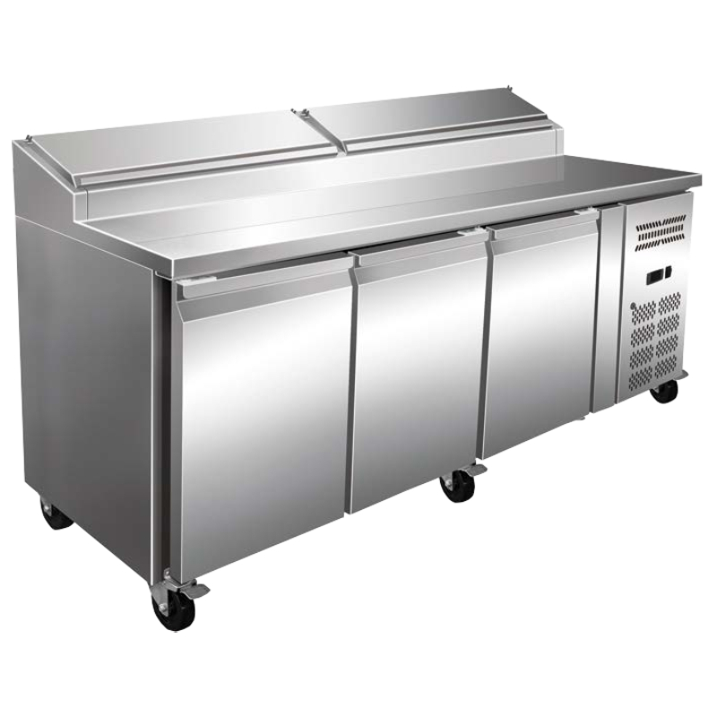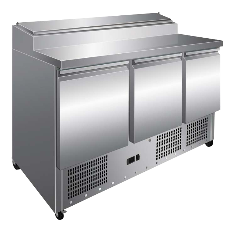 Con una capacidad de 530 litros y 4 puertas de cristal, este bajo mostrador te permite organizar y exhibir tus productos de manera eficiente. Su sistema de refrigeración por enfriamiento forzado (no frost) mantiene una temperatura precisa entre -2 °C y +8 °C. El compresor DANFOSS SECOP, de bajo consumo y que utiliza gas ecológico R-290, garantiza un funcionamiento eficiente y respetuoso con el medio ambiente.