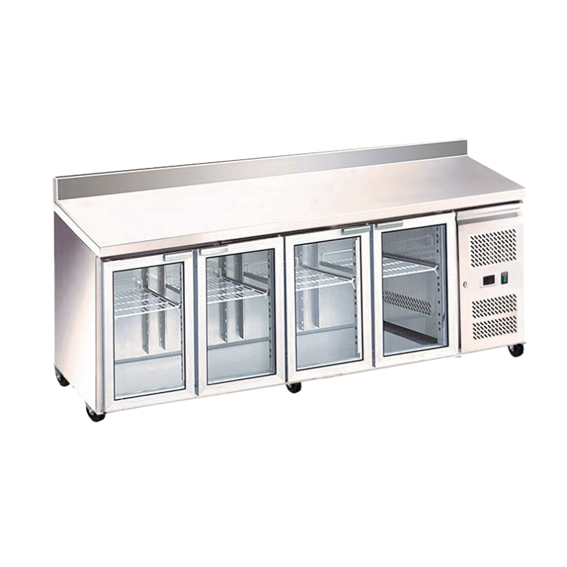 Con una capacidad de 580 litros y 3 puertas abatibles, este bajo mostrador te permite organizar tus productos de manera eficiente. Su sistema de refrigeración por enfriamiento forzado (no frost) mantiene una temperatura constante y precisa entre +2°C y +8°C. Fabricado en acero inoxidable de alta calidad AISI-304, este equipo es robusto, higiénico y duradero.
