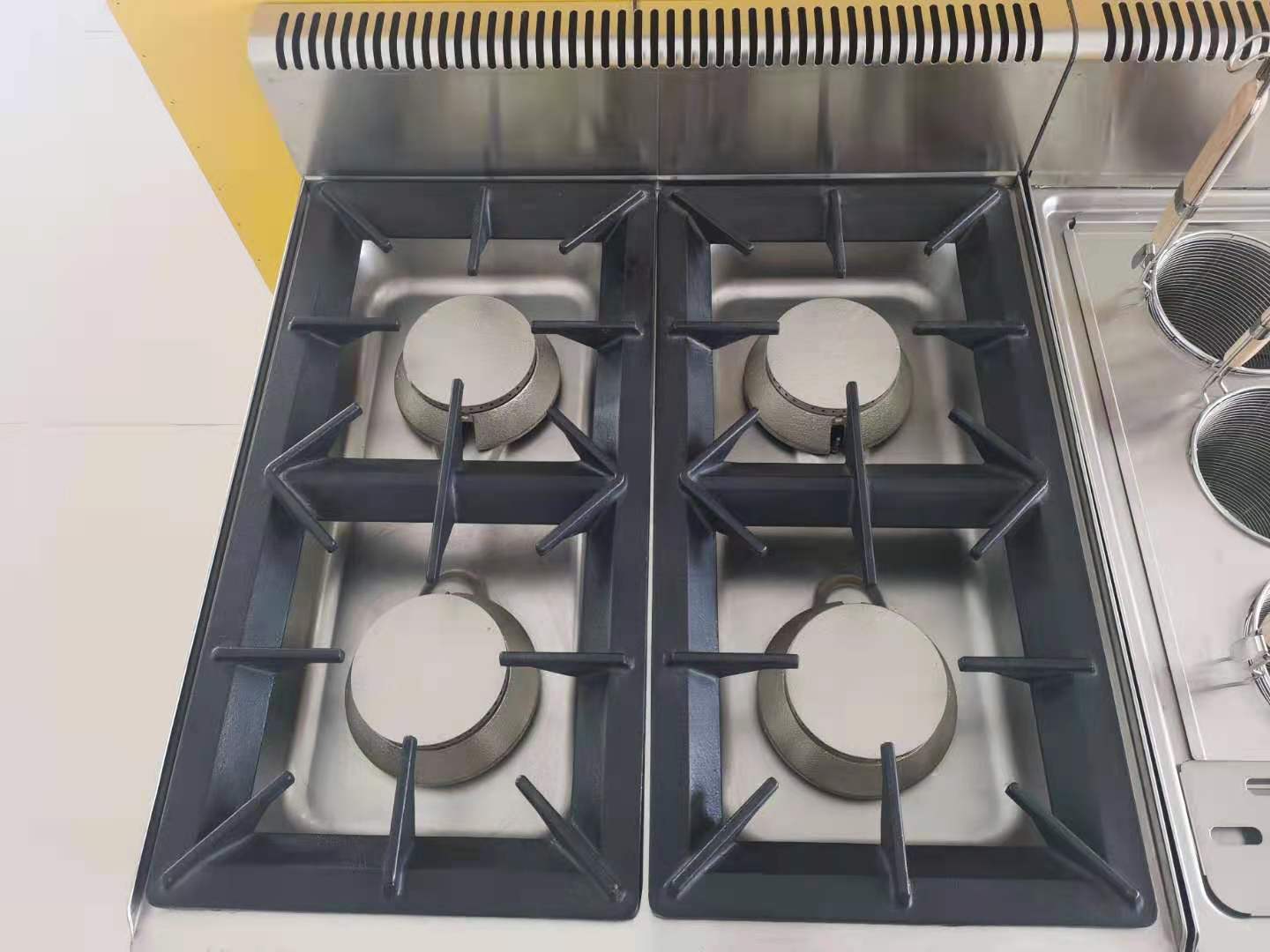 La Cocina C4FS6J es un equipo profesional a gas de 4 quemadores diseñado para colocarse sobremesa, perteneciente a la línea Luxury Serie 650 de fabricación europea. Ideal para cocinas que buscan un formato cuadrado (600×650 mm) con alta potencia, ofrece un total de 16 Kw a través de sus quemadores «Super Burner».