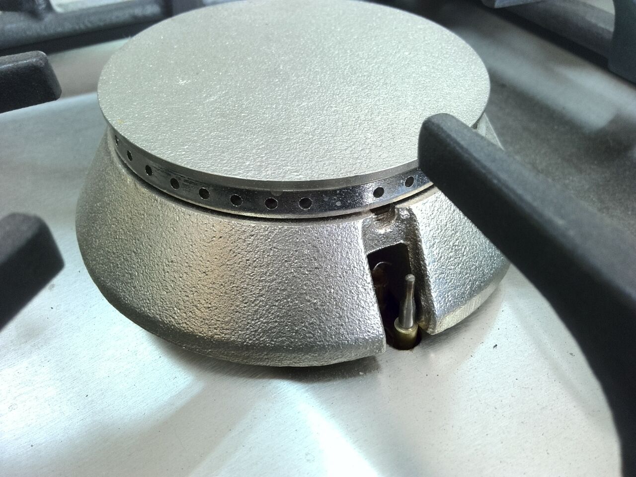 Sistema de regulación del calentamiento mediante llave de seguridad con termopar, que corta el suministro de gas en caso de que la llama se apague.