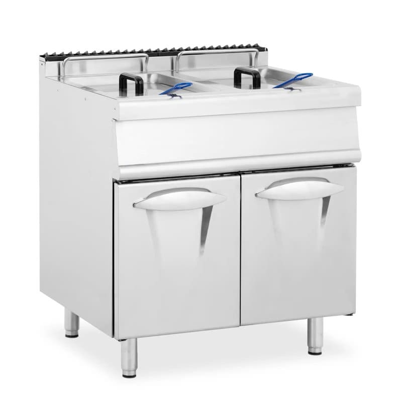 Esta freidora a gas de 10,66 Kw, combina potencia y practicidad, garantizando una cocción rápida y profesional. Tiene unas medidas ideales de 700x600x500 mm y una capacidad de 13+13 litros.