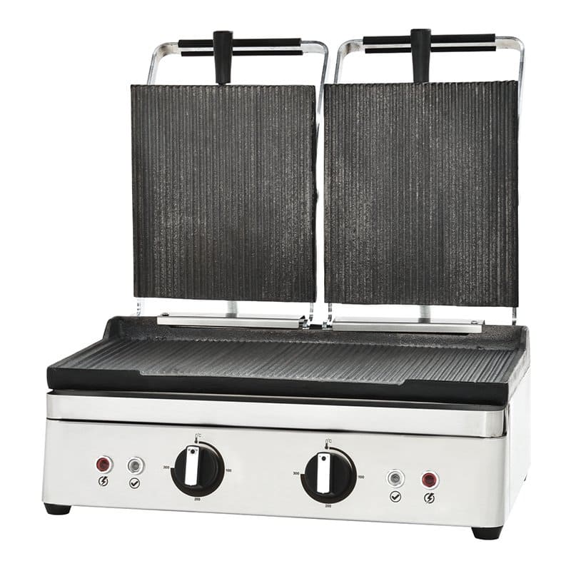Presentamos el grill doble eléctrico de 4,2 kW PG-812D (425x400x210 mm), con una superficie de parrilla de 360×285 mm (x2) y diseño compacto. Perfecto para asar con precisión y rapidez, ideal para cocinas profesionales o uso intensivo. ¡Sabor y practicidad en cada preparación!