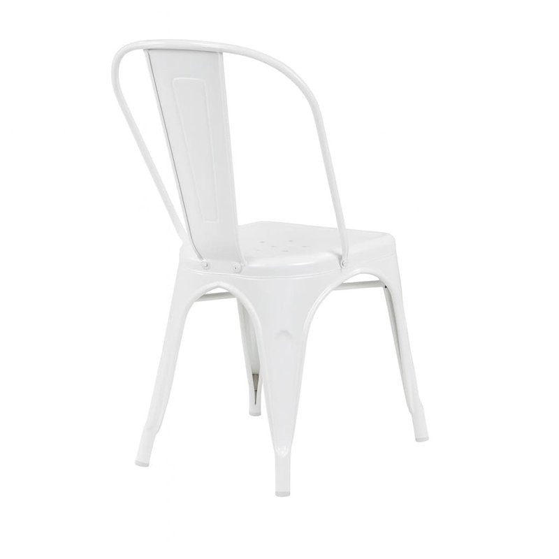 Silla Tool de acero pintado en brillo, ligera, resistente y apilable. Su diseño industrial aporta estilo y funcionalidad tanto en interiores como en exteriores. Perfecta para hostelería gracias a su durabilidad y fácil limpieza.