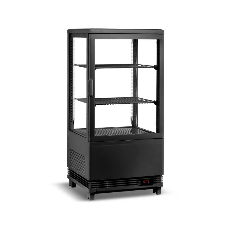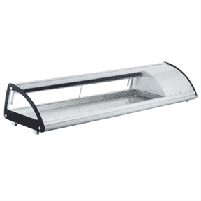 Vitrina expositora de tapas con cristal recto abatible CS-170, ideal para la presentación de alimentos en bares, restaurantes y cafeterías. Su diseño moderno y funcional permite mantener las tapas frescas y bien visibles, ofreciendo una estética limpia y profesional en el mostrador.